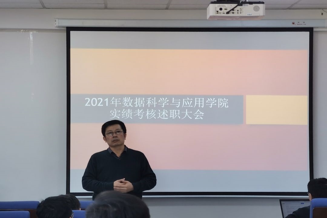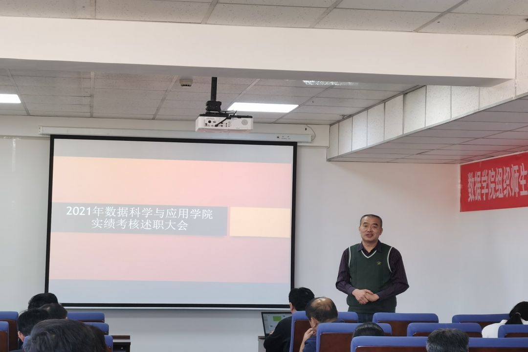 根据《内蒙古工业大学2021年教职工年度考核方案》工作部署要求,结合《内蒙古工业大学数据科学与应用学院2021年度教职工工作实绩考核通知》,2021年12月23日,数据科学与应用学院在金川校区电力大楼1608召开2021年度科级干部述职大会以及各部门教职工考核工作。会议由院长刘利民主持,全体教职工参会。