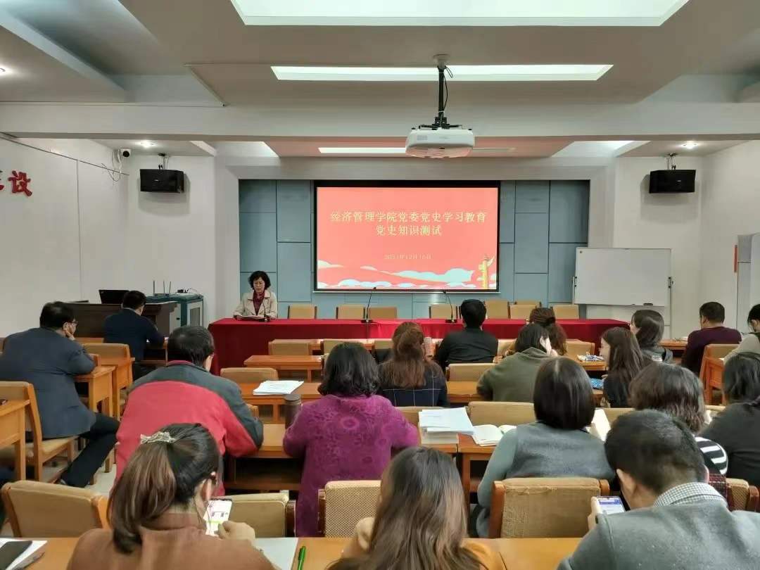 为巩固和拓展党史学习教育成果,引导广大师生尊重党史、尊崇党章、遵守党规,切实把学习成果转化为实际行动,12月16日,经济管理学院党委组织开展党史学习教育知识测试,全院教职工、全体党员学生300余人参加。