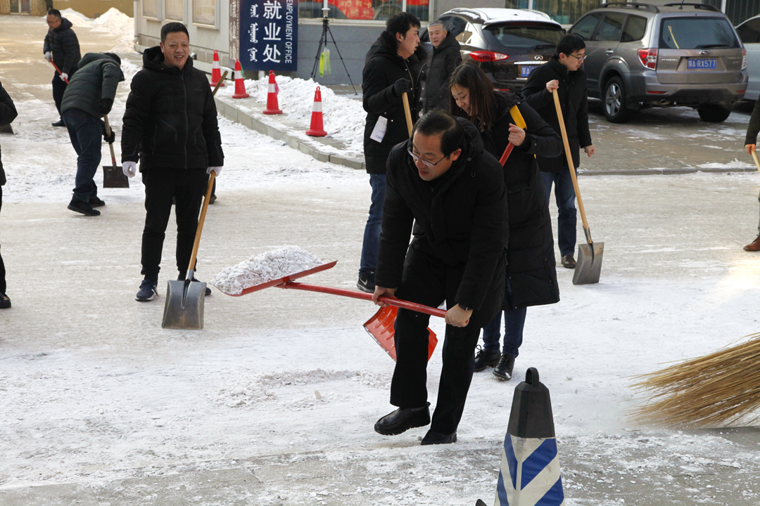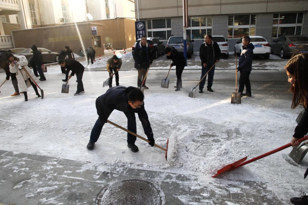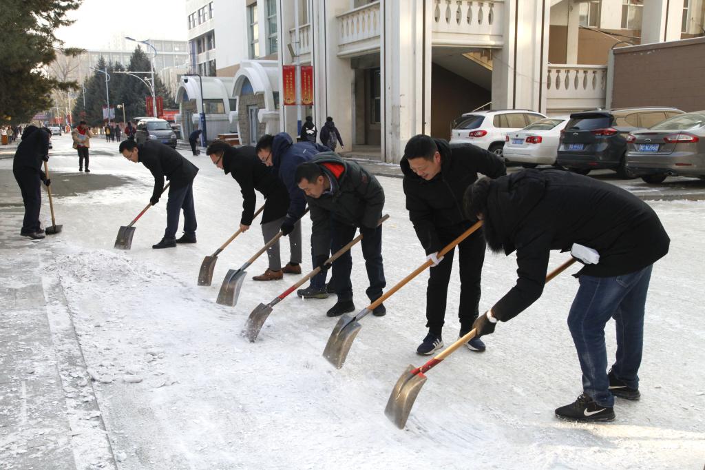 12月2日、3日,机关党委号召所属党支部教工党员,暂时放下手中的工作,拿起铁锹和扫帚,清理明德楼西侧主干道上的冰雪,方便师生出行,消除安全隐患。