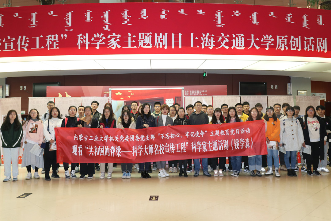10月16日晚,机关党委团委党支部开展“不忘初心、牢记使命”主题党日活动,组织全体党员和部分学生干部观看“共和国的脊梁——科学大师名校宣传工程”科学家主题剧目、上海交通大学原创话剧《钱学森》。