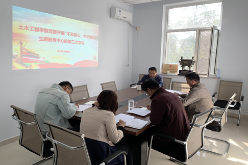 10月9日上午,土木工程学院党委在土木馆C座会议室开展“不忘初心、牢记使命”主题教育中心组第三次集体学习。学院党委书记那音巴雅尔主持会议,中心组成员共五人参加学习。