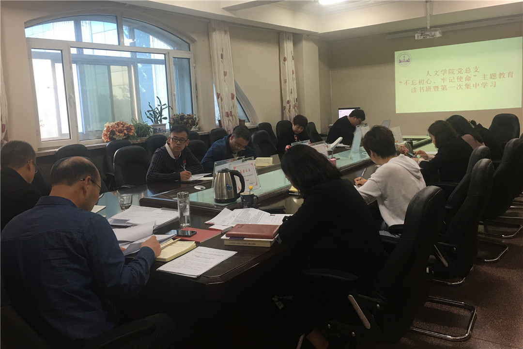 9月26日,人文学院党总支在学院会议室开展“不忘初心、牢记使命”主题教育读书班暨第一次集中学习,学院领导班子成员、党总支委员及各党支部书记参加,党总支书记马利强主持。