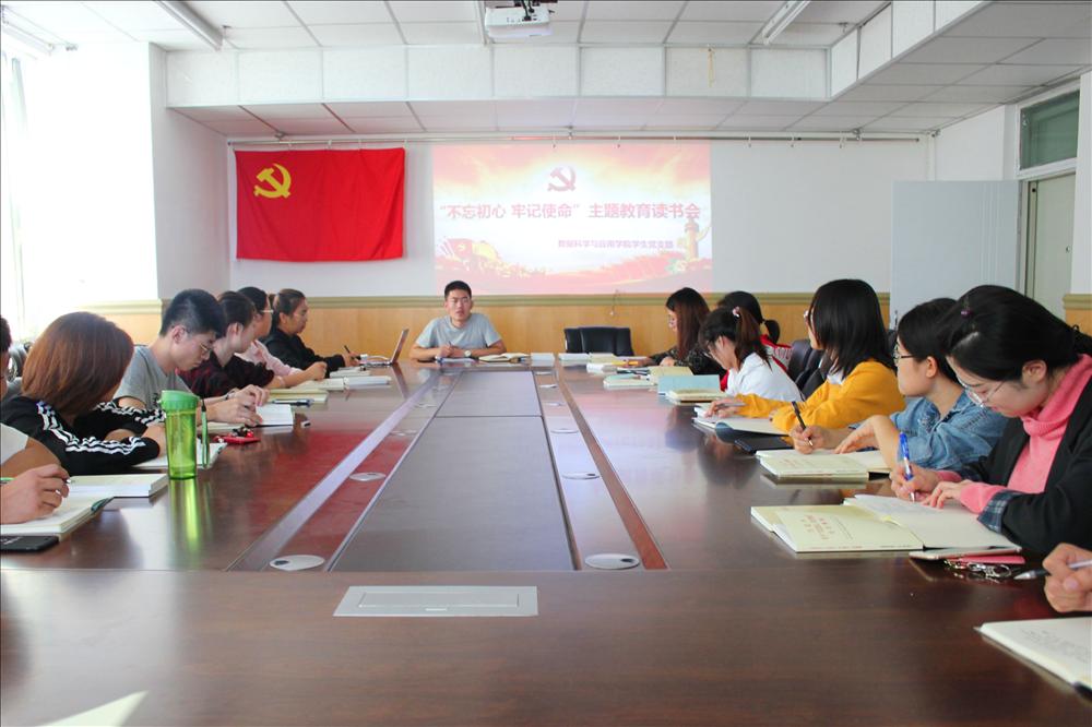 9月24日、25日,数据科学与应用学院分别在青软实训中心一楼报告厅和电力大楼1504会议室召开数据学院软件工程学生党支部及网络工程、信息与计算科学联合学生党支部“不忘初心、牢记使命”主题教育读书研讨会。学院党总支副书记、副院长郭鹏,学院党总支委员、团学办公室主任贾金同,学院团学办公室老师张斌斌、冯文慧及各学生党支部党员参加读书会。