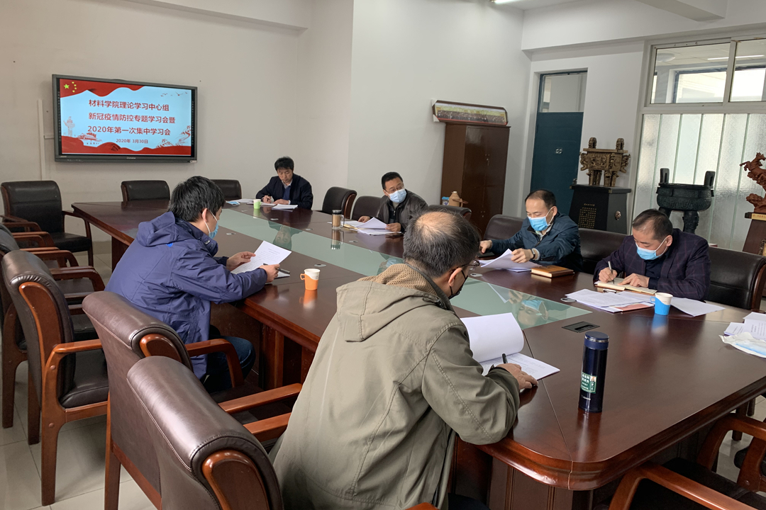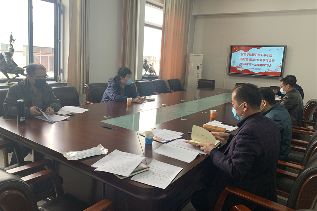 3月30日下午,材料科学与工程学院党委中心组召开关于新冠肺炎疫情防控和经济社会发展工作专题理论学习会。学院党委书记白朴存主持学习会,全体党委委员参会。