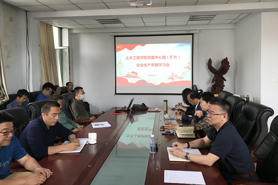 为进一步统一思想、提高认识,从严从紧抓好抓细校园安全生产和疫情防控工作,6月11日下午,土木工程学院党委在新城校区土木馆C座333会议室召开理论学习中心组(扩大)学习会。学院党委书记那音巴雅尔主持会议,学院领导、党委委员、各系及科室负责人、教工党支部书记近30人参加会议。