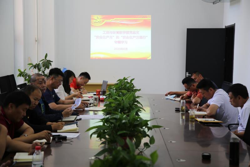 安雷传达《内蒙古工业大学2020年“安全生产月”和“安全生产万里行”活动方案》重要内容,并要求各中心、部门积极配合学校完成相关活动,对体育馆、操场、工训实验室、设备等进行再次自查,做到安全排查无死角。同时强调,党总支和两个教学部要充分落实意识形态责任制,尤其要加强意识形态各类阵地管理,做到守土有责、守土尽责、守土负责。