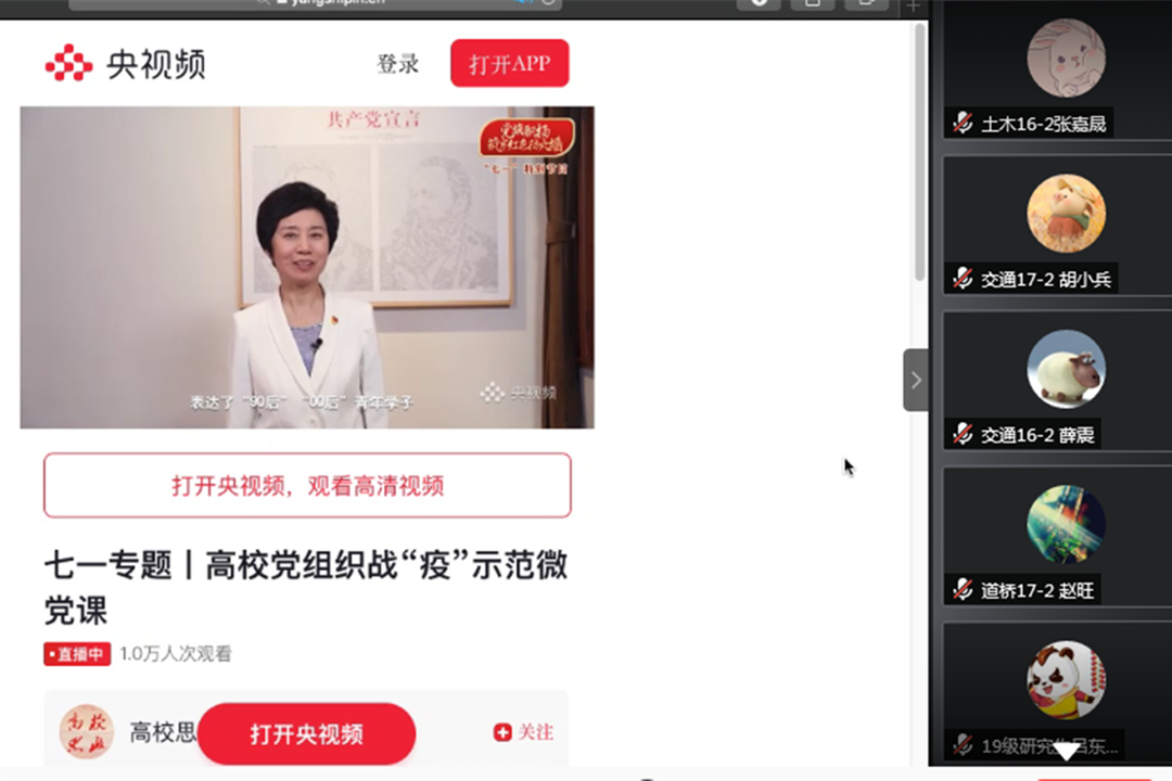 7月1日上午,土木工程学院党委组织全体党员观看高校党组织战疫示范微党课“七一”专场。全体教职工党员和返校的研究生党员在新城校区土木馆B座219会议室集中观看,学生党员通过腾讯会议在线观看。