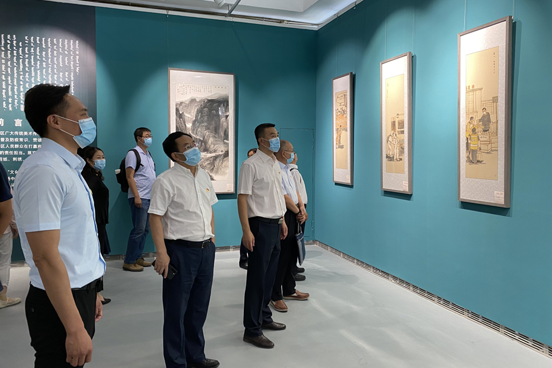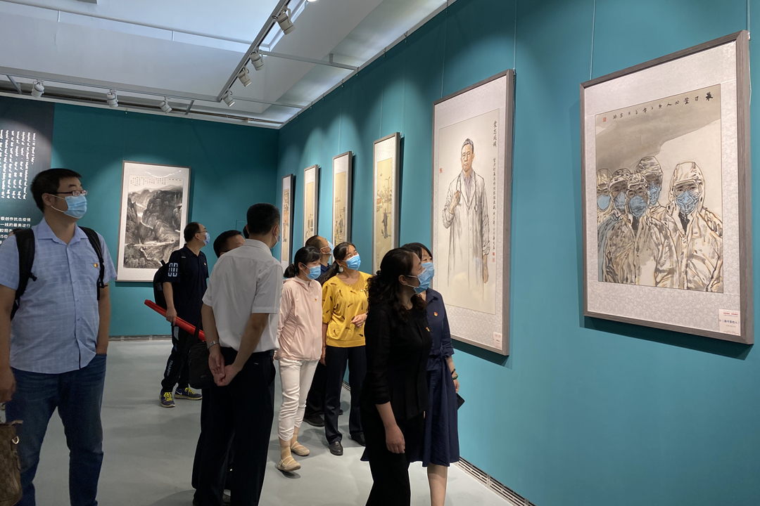 7月1日上午,理学院教工党员代表一行30余人赴内蒙古展览馆参观抗疫绘画展。