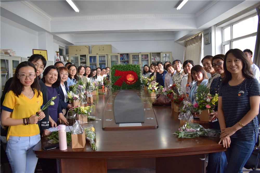 活动中,教师党员代表陈亚杰带领全体师生面向国旗和校旗庄严宣誓,师生同唱《我和我的祖国》,抒发心中炽热的爱国之情,祝福新中国成立70周年。活动还组织各系部教师进行集体插花,喜迎国庆节的到来。