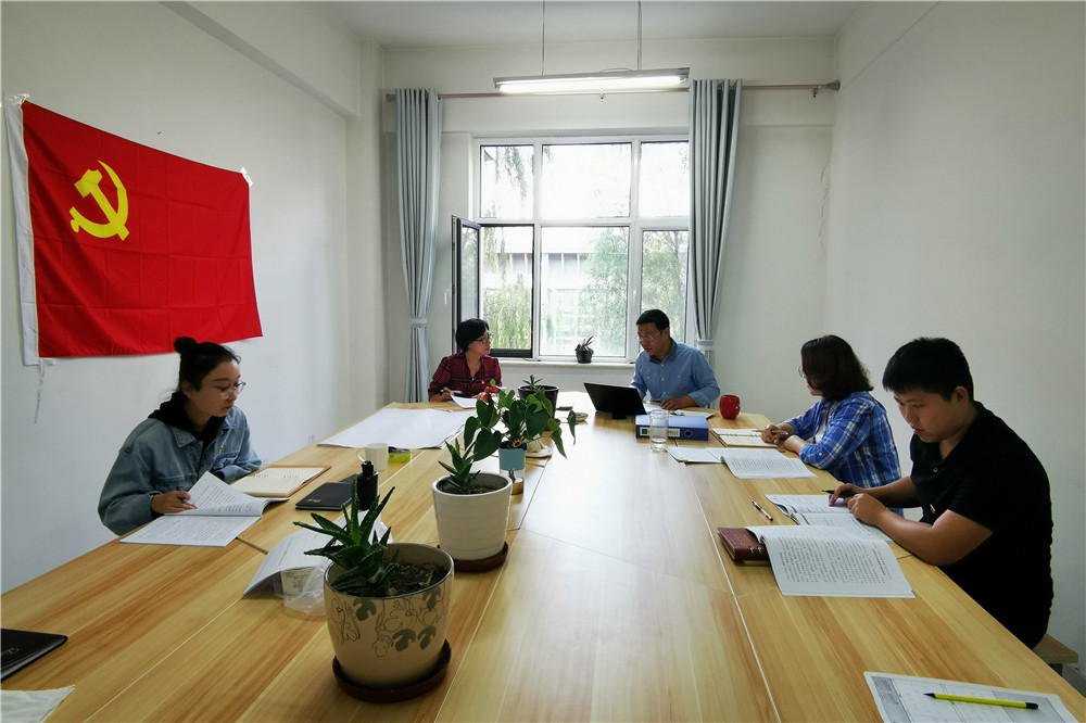 9月26日下午,机关党委教学促进与教师发展中心党支部召开“不忘初心、牢记使命”主题教育集中学习。赵剑峰同志领学了《习近平新时代中国特色社会主义思想学习纲要》中 “坚持以人民为中心”“实现中华民族复兴的中国梦”等内容。党员们进行了深入的交流和讨论。