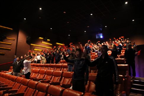 观影过后,大家沉浸在过往的回忆中,感慨祖国70年的发展变迁。全体党员齐唱国歌,表达自己满腔的爱国之情。