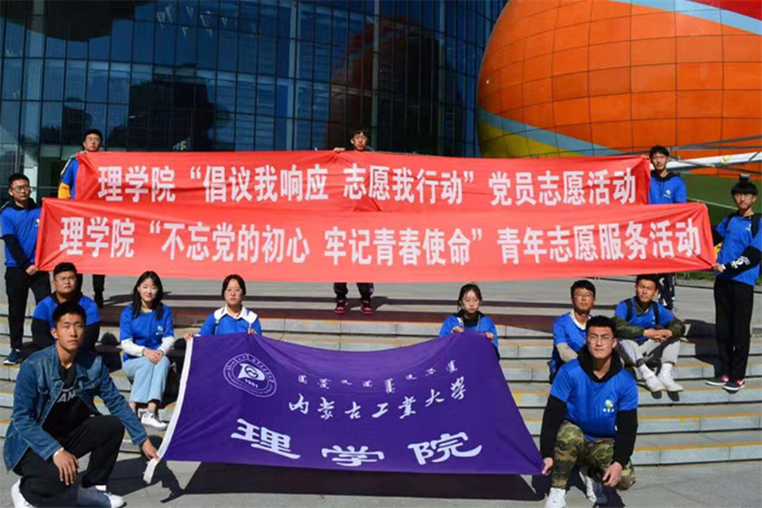 为深入推进“不忘初心、牢记使命”主题教育,10月19日至20日,理学院组织学生党员20余人前往内蒙古科技馆开展“倡议我响应、志愿我行动”志愿服务活动。