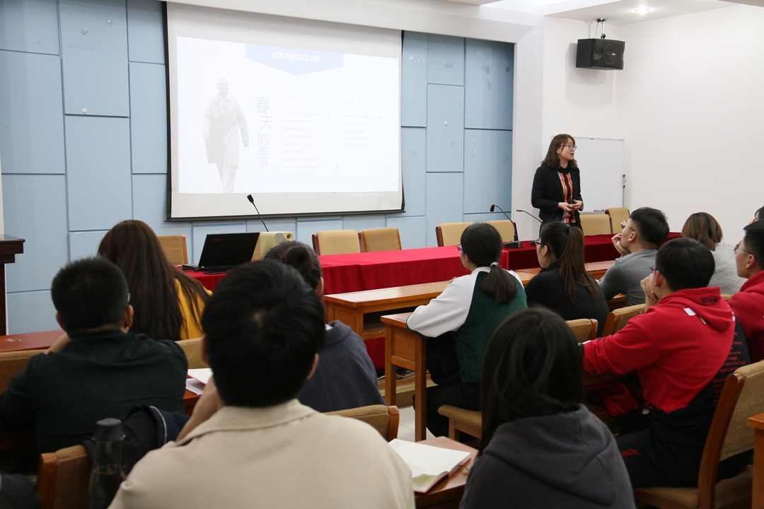 郝晓燕围绕“改革开放四十周年”主题,讲述了改革开放的背景、改革开放四十年所取得的成就、如何继续进行改革开放3个方面的内容,使在场的学生党员深刻感受到了在中国共产党的带领下,中国改革开放四十年来发生了翻天覆地变化,取得了举世瞩目成就。
