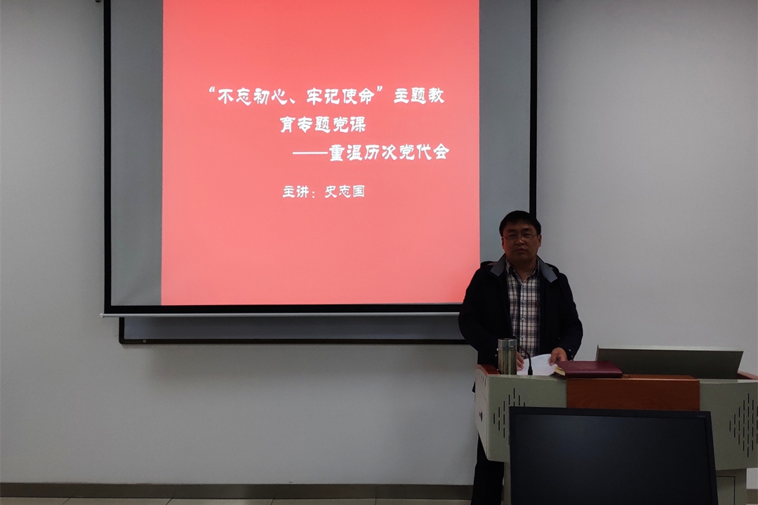 会上,史志国以“重温历次党代会”为题,对中国共产党全国代表大会的发展历程进行了详细解读,对党代会召开的地点、会议主题、重大决议、与会人员构成等方面进行了深入剖析,并对决定党和国家命运的内容进行了重点讲解。他分享了自己的心得:在新时代要不忘初心、牢记使命,坚定理想信念、强化忧患意识,为学校的发展贡献出自身的力量。