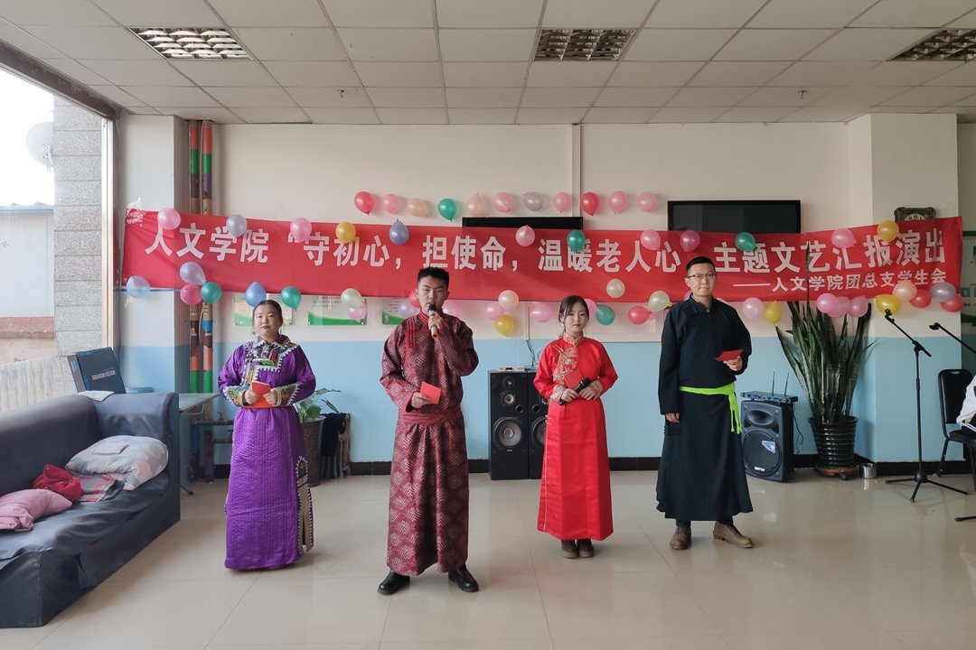 活动中,同学们表演了合唱、蒙语朗诵、舞蹈、小品等多个节目,并给老人们送去了水果,让老人们感受到当代大学生的朝气,以及社会的关怀和温暖。