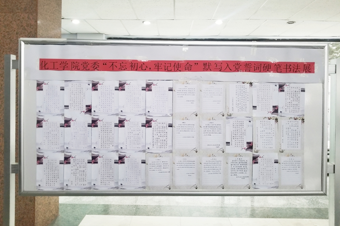 为进一步增强“不忘初心、牢记使命”主题教育的学习效果,激发广大党员以主题教育的新成效汇聚起推动学院党建和事业发展的磅礴力量,积极努力做好本职工作,11月28日起,化工学院党委开展默写入党誓词硬笔书法展活动。学院全体教工党员、学生党员参加。