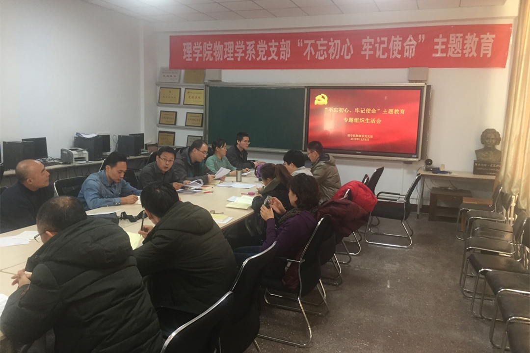 按照学校党委“不忘初心、牢记使命”主题教育安排,结合工作实际,12月2日至6日,理学院党委所属各党支部集中开展“不忘初心、牢记使命”专题组织生活会和民主评议党员。