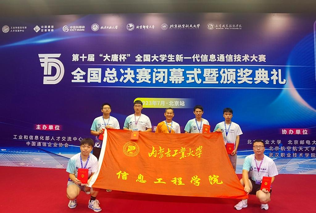 7月16日由工业和信息化部人才交流中心、中国通信企业协会主办,大唐移动通信设备有限公司、北京市教委、北京高校电子信息类专业群承办,北京工业大学、北京邮电大学协办的第十届“大唐杯”全国大学生新一代信息通信技术大赛全国总决赛在北京落下帷幕。我校信息工程学院6个团队晋级全国总决赛,经过激烈角逐,一等奖1项、二等奖2项、三等奖1项、优秀奖2项,创历史最好记录。