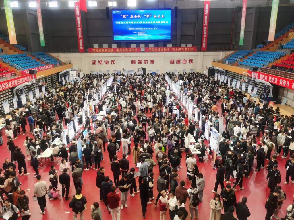 1028日,由内蒙古自治区教育厅、共青团呼和浩特市委员会与我校共同主办的“就”在金秋“职”面未来2024届毕业生秋季大型招聘会在新城校区举行,共有来自全国15个省、自治区、直辖市的130家用人单位进校招聘,近 2000名毕业生参加。