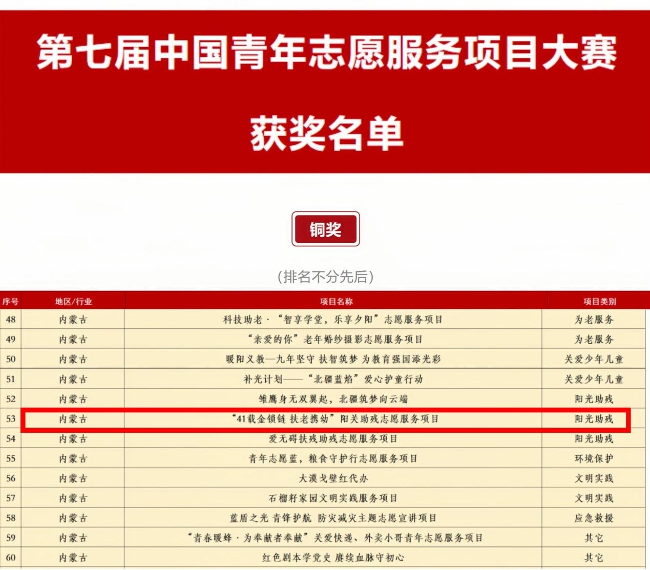 我校“41载金锁链 扶老携幼”阳光助残志愿服务项目荣获第七届中国青年志愿服务项目大赛铜奖