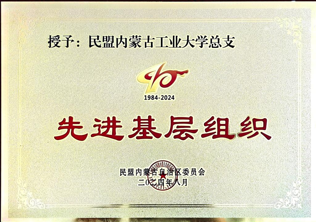 2024年,在学校党委和民盟内蒙古自治区委员会的领导和指导下,民盟内蒙古工业大学总支紧紧围绕自治区党委、政府的重大决策部署,聚焦科技创新、产业升级、绿色发展等领域,深入开展调查研究,积极建言献策。充分发挥高校智力密集优势,组织盟员参与自治区党外人士重点调研课题和民盟内蒙古自治区委员会专项调研,形成多篇高质量调研报告、提案和社情民意建议,为自治区经济社会高质量发展提供了重要参考,被民盟内蒙古自治区委员会授予“先进基层组织”。