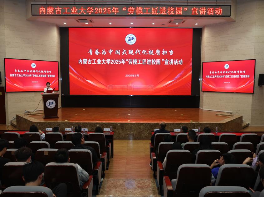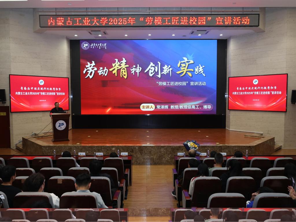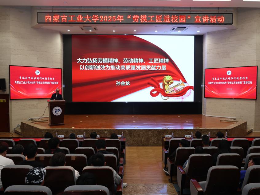 5月15日,我校组织开展劳模工匠进校园活动,全国劳动模范、全国五一劳动奖章获得者、我校优秀校友孙金龙,内蒙古自治区“草原英才”“青年科技领军人才”、我校能源与动力工程学院常泽辉教授作青春为中国式现代化挺膺担当”主题宣讲报告全校300余名师生参加
