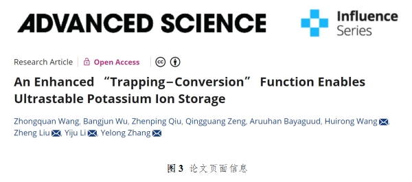 成果An Enhanced “Trapping−Conversion” Function Enables Ultrastable Potassium Ion Storage为题发表在国际学术期刊Advanced Science(中科院一区TOP,IF = 14.3)。我校新能源学院张业龙教授、王辉荣副研究员五邑大学刘争博士、南方科技大学李一举博士为共同通讯作者内蒙古工业大学为论文第一完成单位。该研究得到国家自然科学基金、鄂尔多斯新能源战略性先导科技专项的资助。