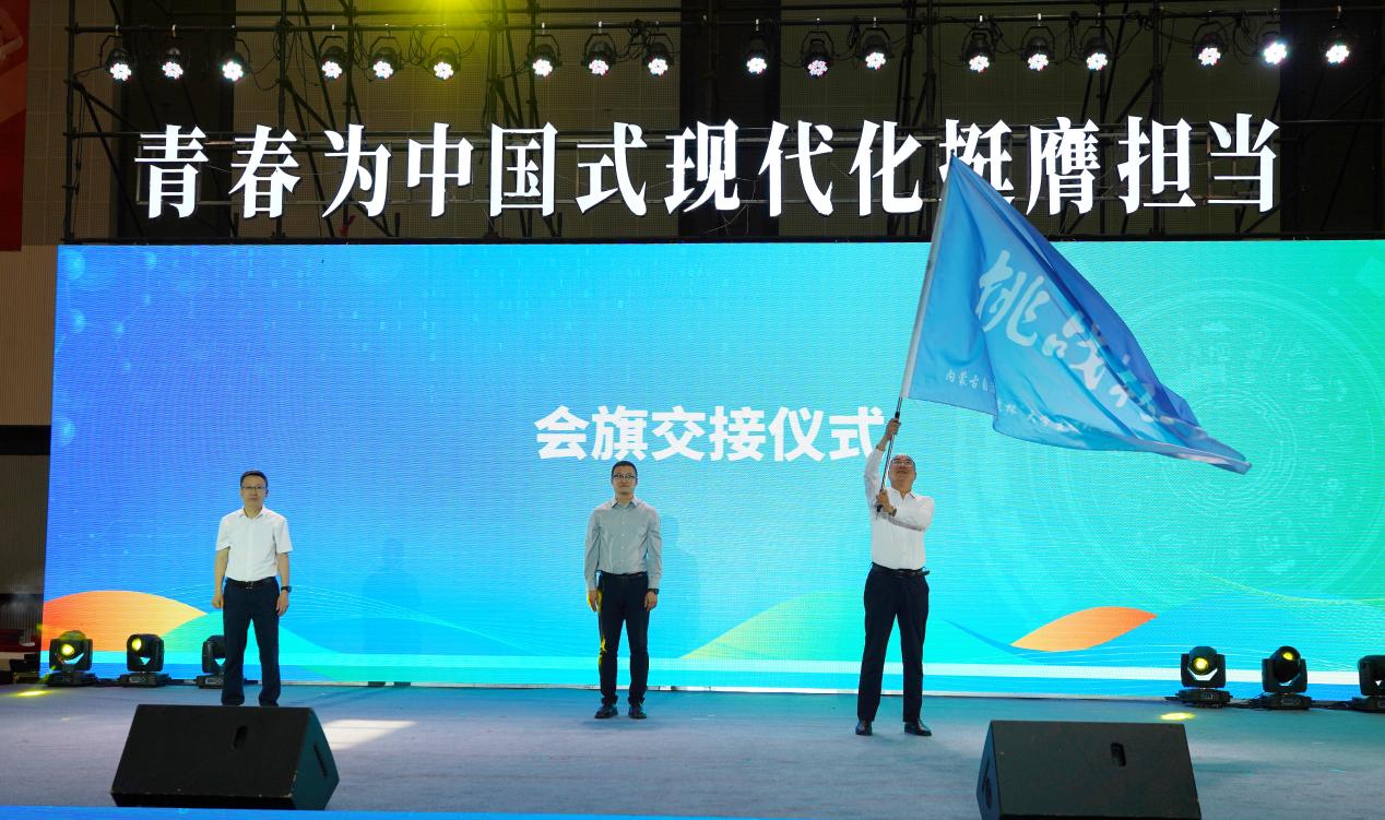 闭幕式上,校党委委员、副校长王利明代表学校出席并接过“挑战杯”赛旗,获得2027年内蒙古自治区“挑战杯”大学生课外学术科技作品竞赛承办权。学校将以承办2027年“挑战杯”内蒙古自治区区赛为契机,进一步厚植创新创业人才培育沃土,认真学习历届承办高校办赛经验,全面落实大赛承办任务,凝心聚力,以赛促教、以赛育才,大力传承“无挑战,不青春”的“挑战杯”精神,引导和激励广大学子心怀“国之大者”,敢想敢为、善作善成,奋力书写为中国式现代化挺膺担当的青春篇章。