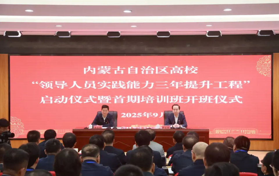 9月25日至26日,内蒙古自治区高校“领导人员实践能力三年提升工程”首期培训班在内蒙古大学举办。自治区党委常委、组织部部长李玉刚出席开班式并讲话。自治区党委教育工委书记、教育厅党组书记、厅长杜汇良作结业讲话。培训以线上线下相结合的方式进行,我校党委书记李占峰在主会场参加培训,其他领导班子成员及处级以上干部在学校分会场线上参加培训