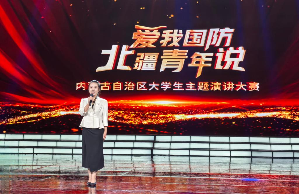 本次大赛经过高校选拔、初赛、复赛层层筛选,共12名优秀学子入围决赛。决赛现场,选手们围绕“爱我国防”主题,以“我”的视角、“真”的故事、“热”的情怀展开精彩演讲。王梓晴同学以“先辈热血沃疆土,我辈丹心护金瓯”为题,以家乡兴安盟的红色印记为切入点,将历史与当代国防紧密串联,倡导广大青年学生增强忧患意识,积极学习国防知识,以“功成不必在我”的境界和“功成必定有我”的担当,为筑牢祖国北疆安全稳定屏障、实现中华民族伟大复兴贡献青春力量。