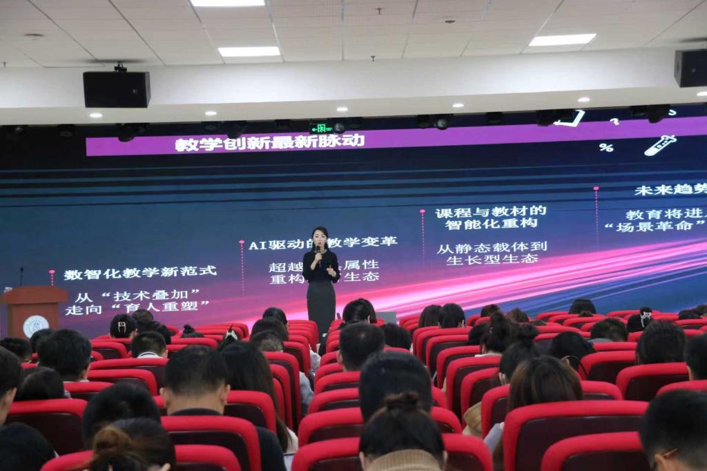 活动期间,全国高校教师教学创新大赛国赛一等奖获得者、贵州财经大学张克雯教授,以“课程思政教学设计及数智化教学创新实践”为题作专题讲座。她结合自身教学实践经验,深入阐释课程思政与专业教育的深度融合路径和“以学生为中心”的教学重构理念,并现场展示数智化教学工具的实际运用方法,为新教师提供可借鉴的创新教学思路。
