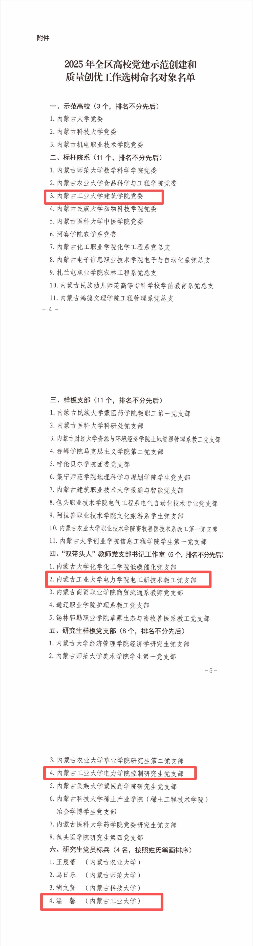 近日,自治区党委教育工委印发《关于选树2025年全区高校党建示范创建和质量创优工作命名对象的通知》,我校成功入选2025年全区高校党建“标杆院系”“双带头人”教师党支部书记工作室、研究生样板支部、研究生党员标兵4项荣誉。