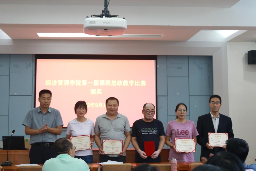 随后举行经济管理学院第一届课程思政教学比赛颁奖仪式。红光、伏昕、薛阳3位老师获得一等奖;温翔慧、李光荣、刘永团、王福、苑曙光5位老师获得二等奖。本次课程思政教学大赛进一步激发了学院教师的课程思政教学热情,发挥教师在课程育人中的主体作用,引导激励教师承担教书育人职责。