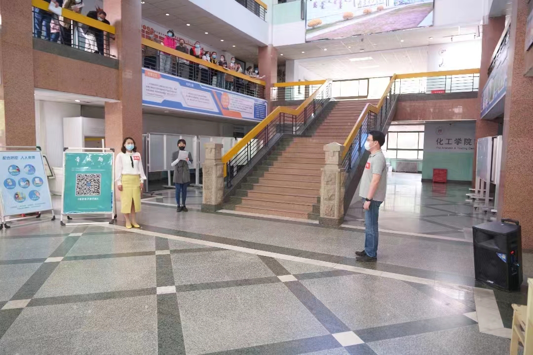 为进一步提高学院疫情防控应急处置能力,检验学院疫情防控方案、相关制度的科学性和可行性,5月19日下午,化工学院在新城校区化工楼组织开展疫情防控应急演练。学校疫情防控工作领导小组副组长、副校长韩永全,疫情防控工作领导小组办公室主任、党政办公室主任李兴华、副主任陈博,督导检查工作组组长、机关党委书记吕曦臻,督导检查组成员现场观摩指导。学院全体教职工参加演练,学院党委副书记、副院长张建主持。