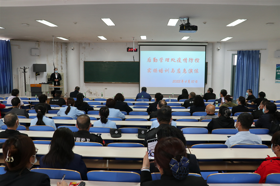 为切实提升后勤管理处疫情防控应急处置工作的能力,全面检验和优化管理服务保障过程中疫情防控应急预案的科学性和可操作性,有效保障学校师生的身体健康和生命安全,4月10日下午,后勤管理处在新城校区组织开展疫情防控实操培训和应急处置演练。后勤管理处领导班子及各部门、中心和物业公司部分管理骨干人员参加培训和演练。