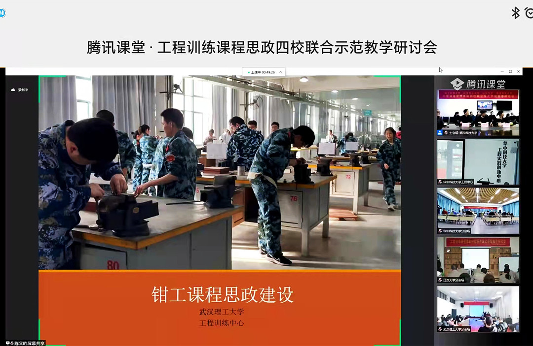 课程思政是落实高等教育立德树人根本任务,践行以德为先、德才兼备育人理念,实现知识传授与价值引领相统一育人目标的重要保障。为探索工程训练有效融入思政元素新方法,提升工程训练思政育人功能,工程训练教学部组织全体教师在线观摩学习湖北省高等教育学会金工教学专业委员会课程思政建设工作组举办的工程训练课程思政示范线上教学课程。全体教师学习了来自武汉科技大学、华中科技大学、武汉理工大学和江汉大学4所高校的4位青年教师的3D打印、钳工、手工木作和数控加工4个不同的工程训练项目。