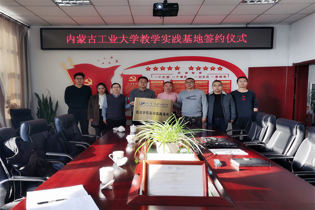 12月14日上午航空学院在呼和浩特气象站举行内蒙古工业大学教学实践基地正式签约仪式。航空学院党委书记郭凌峰分管科研与教学工作的副院长郭俊宏交通运输专业负责人一行来到呼和浩特气象站,与该站工作人员共同进行了实践实验基地挂牌仪式。