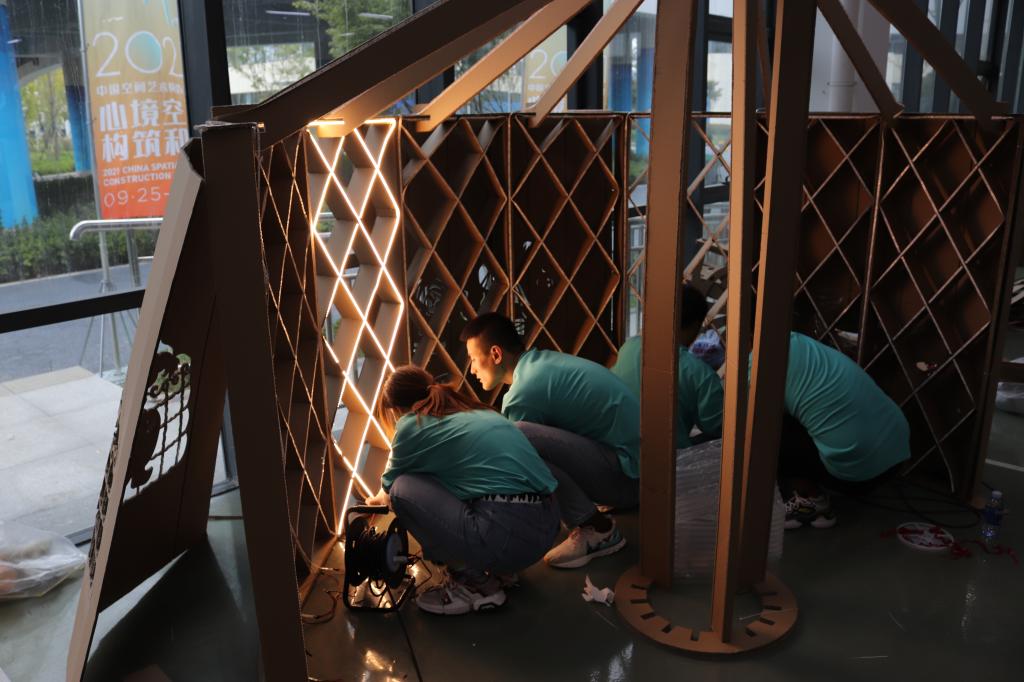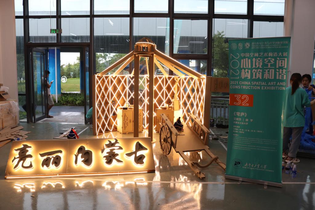 9月25日至26日,由中国美术家协会环境设计艺术委员会、清华大学美术学院、中南大学建筑艺术学院、鲁迅美术学院主办,清华青岛艺术与科学创新研究院承办,中国建设文化艺术协会环境艺术委员会、中国建筑学会室内设计分会、网易、青岛科技大学、青岛大学美术学院协办的2021“心境空间构筑和谐”中国空间艺术构造大展,在清华青岛艺术与科学创新研究院举行。来自全国现场参赛的54所高校和线上参赛的17所高校,近500名学生140名指导教师参加了为期2天的搭建展示活动。本次大展共有71件作品入围,评出匠心构筑作品10件、创新创意作品10件。在此次大赛中我校建筑学院环境设计专业艾妮莎、薛宇担任指导教师7名学生组成参赛团队进入决赛。在高校林立、高手如云的激烈角逐中,同学们不畏强势,信心百倍,分工合作,在众多强队中脱颖而出,最终获得创新创意奖。