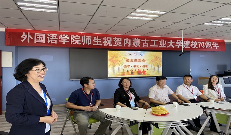 9月16日下午,外国语学院在金川校区电力大楼200多功能教室举办庆祝建校70周年优秀校友座谈会会议以“坚守·奋进·创新”为主题,邀请内蒙古空管局管制运行部部长惠金有、包钢集团工会副主席杨利民等5名学院优秀校友进行了经验分享和互动交流。学院全体班子成员、教师和学生代表参加座谈会院长张红主持会议