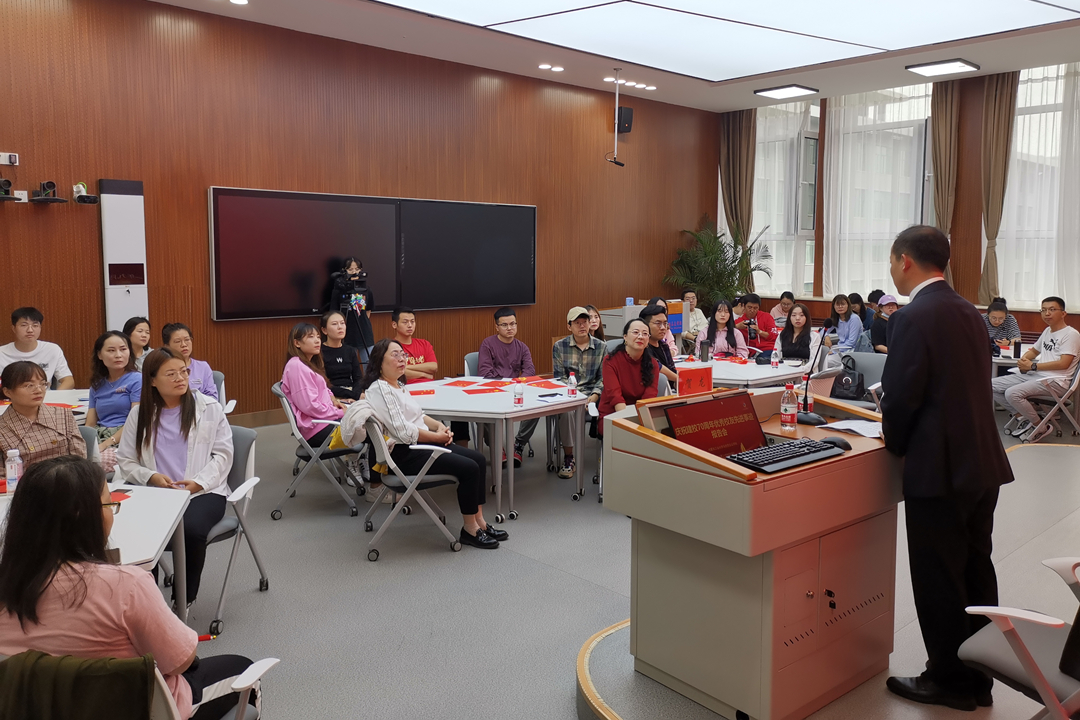 9月15日午,马克思主义学院在新城校区智慧实践基地举办庆祝建校70周年优秀校友先进事迹报告会,邀请学院优秀毕业生贺龙同学讲座。马克思主义学院院长马军、副院长宁琳琳出席报告会,学院全体研究生参加会议。报告会由学院副院长宁琳琳主持。