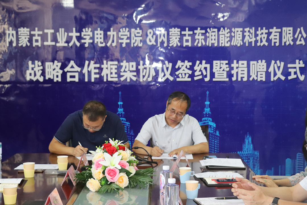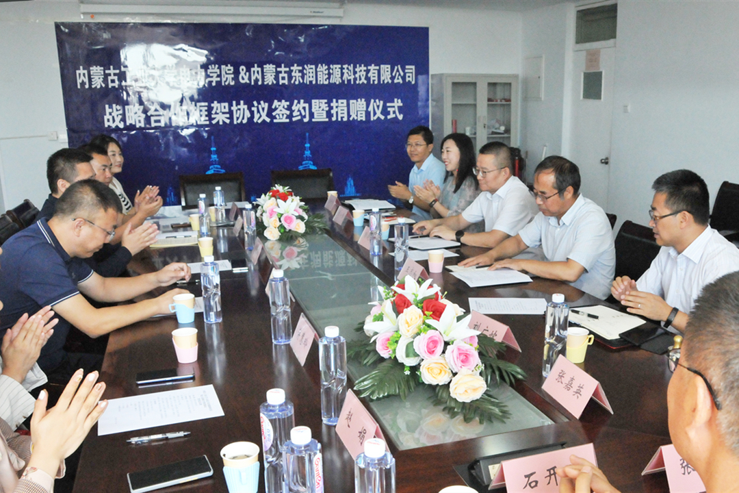 刘全东指出,东润能源是国家级高新技术企业和双软认证企业,荣获中国新能源行业最具投资价值品牌、内蒙古名片百强品牌。公司具有承装(修、试)电力设施许可证书电力总承包资质亦是全国新型智能化风电场优秀设备、材料供应单位。内蒙古工业大学电力学院是内蒙古电力能源行业首屈一指的高等院校,与东润能源有很深的渊源和良好的合作。公司总经理张亮是内工大2002级校友,对母校有着深厚的情谊,双方多年来在各领域深入合作,建立了深厚的合作关系。为了感谢内蒙古工业大学电力学院多年来的支持与厚爱,支持母校的科研发展,加深校企双方在多种形态能源、新业态、综合智慧能源开发等方面的产学研合作,东润能源特意在内蒙古工业大学建校70周年和第37个教师节来临之际,与电力学院签订战略合作框架协议并捐赠110万元设备与数据资料,以尽对母校的绵薄之力。这美好的意愿必定会加强双方更深入的合作和联系。希望内蒙古工业大学桃李芬芳、再续华章。预祝70周年校庆圆满成功!