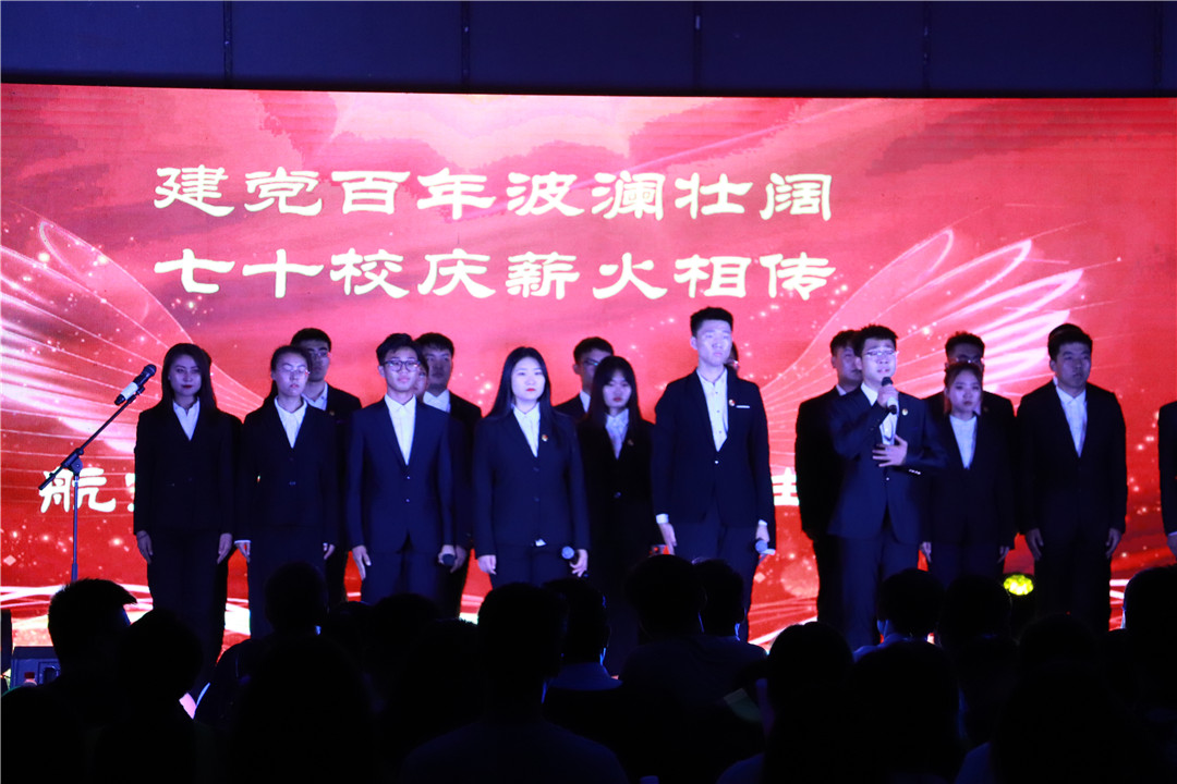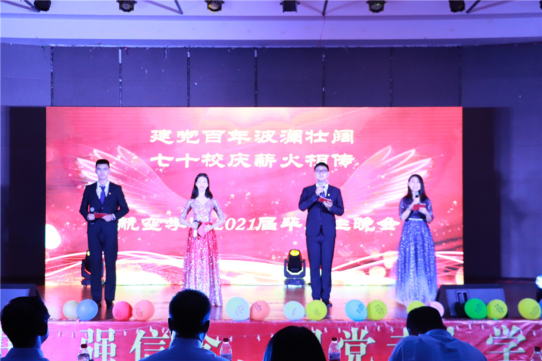2021届毕业生离校前夕,航空学院在新城校区学生活动中心举办“建党百年波澜壮阔,七十校庆薪火相传”第一届毕业生晚会学院全体教职工、部分学生及2021届全体毕业生参加晚会。