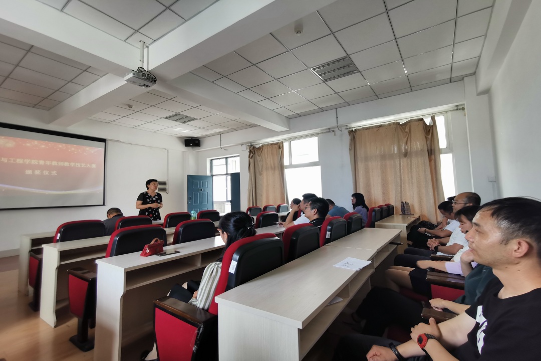 经专家评委现场评分,最终王晓欢老师获得特等奖,苏娟老师获得一等奖,梁亚红、刘红霞2位教师获得二等奖,孙振邦、郭春霞、刘君城3位教师获得三等奖。颁奖仪式上,大赛评委组长陈芙蓉教授代表评委组,分别从教学手段革新、互动方法运用、教学情感交流等角度对参赛选手作了精彩点评。同时,学院党委书记白朴存教授作总结发言,从课件版面设计、对课程的理解、科研反哺教学等方面对青年教师提出希望和建议。同时,大赛评委根据本次大赛各参赛教师的表现和潜力选拔出参加学校教学技艺大赛的2名选手。最后,陈芙蓉教授和白朴存教授分别为获奖教师颁奖。