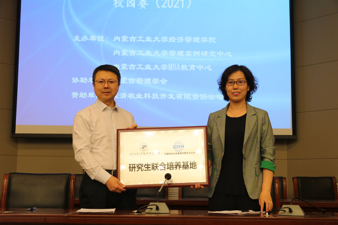 5月22日下午,全国管理案例精英赛之“蒙清杯”内蒙古工业大学校园赛(2021)、研究生联合培养基地签约及企业导师证书颁发仪式在新城校区图书馆报告厅举行大赛由经济管理学院举办,内蒙古蒙清农业科技开发有限责任公司独家赞助。