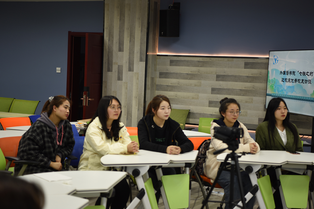 访谈过程中,两位校友回顾了大学生活,表达了对母校的思念,并结合自身经历,向在校外语学子、文科专业学生,尤其是面临毕业、择业关口的毕业生传授了宝贵经验。他们就近取譬,解读管理学中的“木桶效应”,建议同学们在埋头苦学的同时,积极参与学生活动和社会实践,合理安排时间,规划学习生活,做一专多能的综合性复合型人才。鼓励毕业生不拘泥于专业、领域,利用语言优势,开拓眼界,敢想敢干,挑战自我。希望同学们能不忘初心,沉下心来为文化传播和教育事业贡献自己的力量。两位校友深厚的学养和丰富的阅历给予在场同学很大启发。访谈结束后,两位校友一一解答了现场师生的问题。