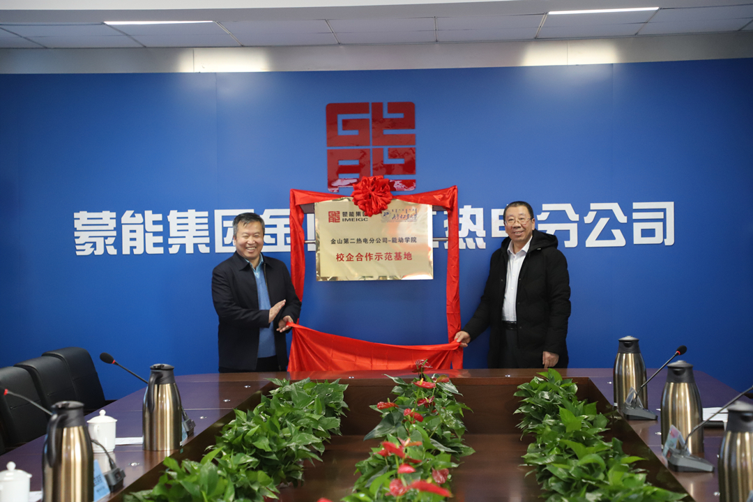 12月18日,能源与动力工程学院与内蒙古能源发电投资集团有限公司金山第二热电分公司签订校企合作协议,并举行合作示范基地挂牌仪式。金山第二热电分公司党委书记马刚、总经理苏三云、生产准备部部长刘恒鑫,能源与动力工程学院院长孟克其劳、副院长王清华、热能与动力工程系主任马剑龙参加签约仪式。