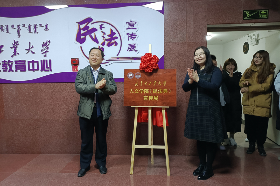 12月3日下午,学院《民法典》宣传展开展仪式在金川校区电力大楼26楼举行。校社科联秘书长、科学技术处副处长布和朝鲁与校党委宣传部副部长尚进为《民法典》宣传展揭牌部分兄弟学院及人文学院部分师生参加。人文学院院长文宗川向参加人员介绍了《民法典》宣传展布展情况。大家集体参观了展览