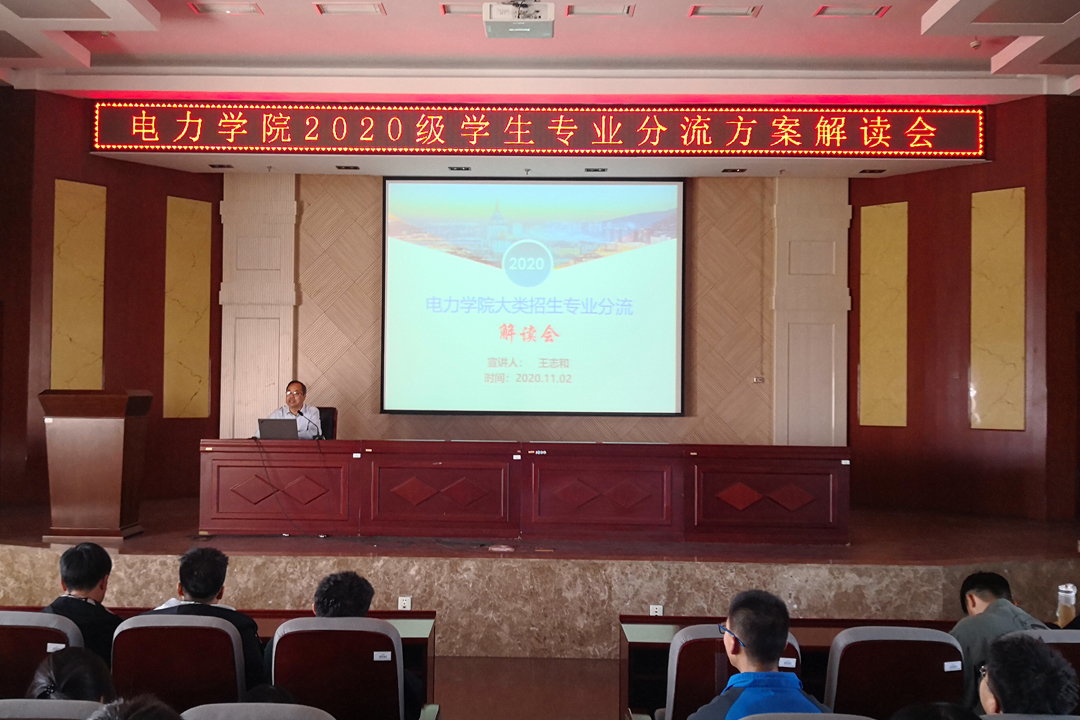 11月2日下午,电力学院在金川校区电力大楼十楼报告厅举办2020级电气类学生专业分流方案解读会。学院2020级电气类专业学生参会。