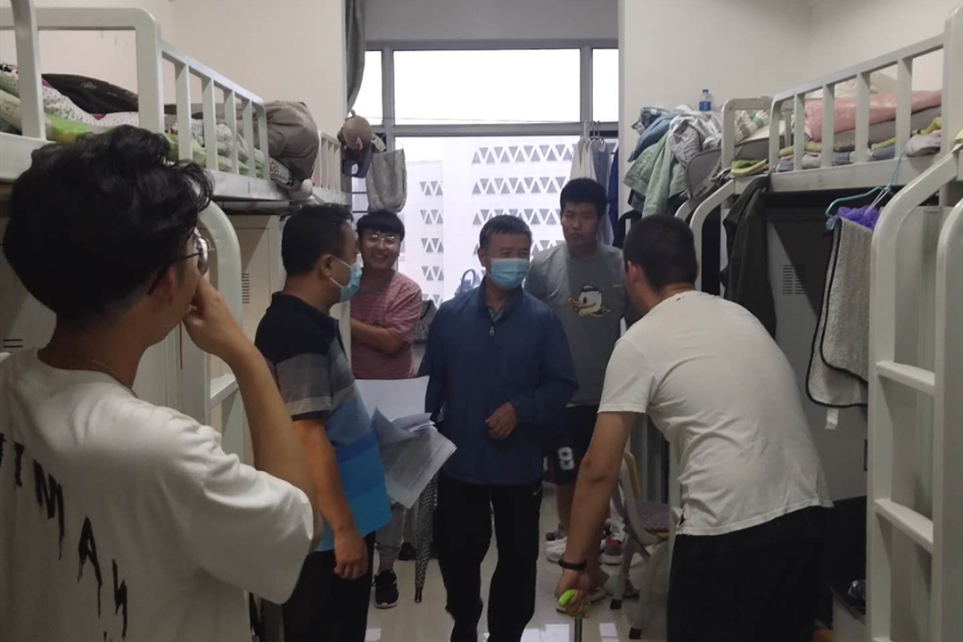 为落实学校关于疫情防控工作的相关部署,了解学生新学期返校情况,做好新学期学生工作和安全教育工作。8月31日下午,土木工程学院党委书记那音巴雅尔,副书记、副院长陈辉,副院长崔亚楠、冯斌,负责学院团学工作的教师、系负责人及教工党支部书记深入本科、研究生学生宿舍进行安全检查并开展教育引导工作。