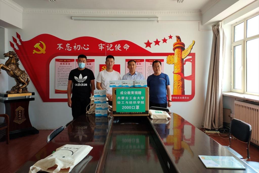 6月12日上午,轻工与纺织学院2015级优秀毕业生刘越代表成公教育向学院捐赠口罩2000个和内蒙古选调生、公考相关书籍,用拳拳爱心表达着对母校师生的牵挂,以实际行动为学院疫情防控工作贡献自己的力量。学院副书记副院长达布希拉图,团学办公室主任丁志明参加捐赠活动。